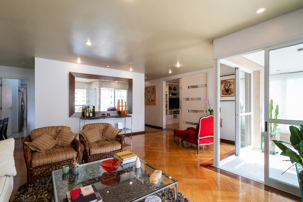 Apartamento de 195m2, 3 quartos (suítes), 3 vagas de garagem fixas, área de lazer completa- Venha morar em Moema !! AApresentamos um excelente apartamento de 195m² no prestigiado Condomínio Las Palmas, localizado na Alameda dos Aicás, em Moema. Este imóvel oferece conforto, sofisticação e uma localização privilegiada. Características do Imóvel: 3 quartos/Suítes: Amplas e bem iluminadas, garantindo privacidade e conforto. Vagas de Garagem: 3 vagas fixas na matrícula Sala de TV: O quarto dormitório foi transformado em uma aconchegante sala de TV. Sala de Estar e Jantar: Espaçosas e integradas, ideais para receber convidados. Sala de almoço Varanda Envidraçada: Proporciona uma vista deslumbrante Varanda técnica para aparelhos de ar-condicionado. Cozinha, copa e Área de Serviço: Funcionais e bem planejados., armários da cozinha e área de serviço kitchens. Despensa e banheiro de serviço. Lavabo: Para maior comodidade. Corredor com Roupeiro: Espaço extra para armazenamento. Depósito Privativo na garagem Diferenciais: Portaria presencial Ar Condicionado: Instalado nas principais áreas. Aquecimento de Água: Torneiras com água quente. Gerador: Garantia de energia em situações emergenciais. Hall Privativo: Apenas 2 apartamentos por andar Hall de entrada de pé-direito alto e envidraçado, proporcionando elegância e luminosidade. Área de lazer: Academia Piscina Sauna Brinquedoteca Playground Quadra Poliesportiva Salão de Festas Localização Privilegiada: Situado em Moema, o Condomínio Las Palmas oferece proximidade a diversas facilidades: Parque Ibirapuera,hospitais,comércio e gastronomia, transporte, escolas e muito mais. Este é o imóvel perfeito para quem busca conforto, elegância e uma localização estratégica em São Paulo. Agende uma visita e encante-se com tudo o que este apartamento tem a oferecer! Preço e disponibilidade do imóvel sujeitos a alteração sem aviso prévio.